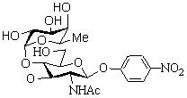 | 產品名稱:4-硝基苯基-2-乙酰胺基-2-脫氧-4-O-(α-L-巖藻糖)-β-D-吡喃葡糖苷 |